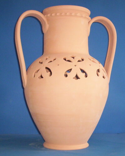 Portaombrelli Giara in terracotta traforato. Realizzato con e senza manici. PO02t – Altezza 50 cm. Il traforo viene effettuato nelle seguenti tipologie: – traforo a rombi – traforo foglia A – traforo foglia B – traforo fiore