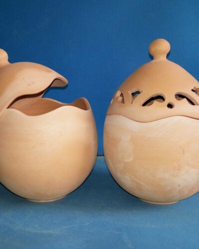Uova portagioie in terracotta traforata usabili anche come porta oggetti. Altezza U04t – 17 cm. Il traforo viene effettuato nelle seguenti tipologie: – traforo a rombi – traforo foglia A – traforo foglia B – traforo fiore Disponibile anche in versione […]